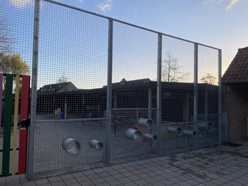 Voor de kleuterschool in Alveringem hebben we een functionele en veilige scheidingswand geplaatst op de speelplaats. Deze wand zorgt voor een duidelijke afbakening tussen verschillende speelzones, waardoor de kinderen in een veilige en overzichtelijke omgeving kunnen spelen. We kozen voor duurzame materialen die bestand zijn tegen weer en wind, met een afwerking die perfect past bij de uitstraling van de school. Dankzij deze aanpassing kunnen de kleuters ongestoord genieten van hun speeltijd in een gestructureerde en kindvriendelijke ruimte.